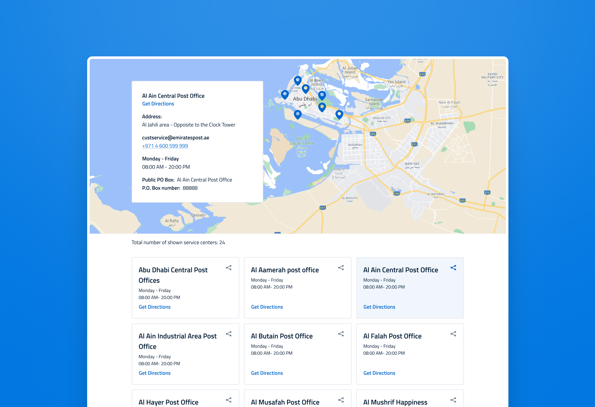 We worked closely with the Emirates Post project team to gain a deep understanding of their goals and challenges. This collaborative effort allowed us to design an optimized information structure and deliver the best visual design solutions.